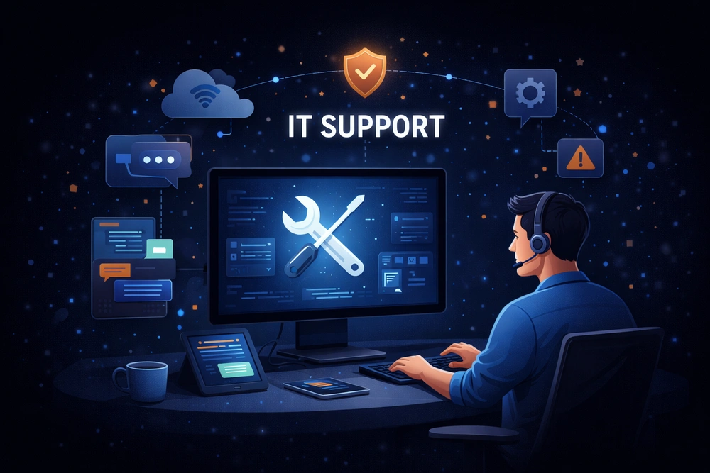 Teknoloji, ancak sorunsuz çalıştığında işletmenize değer katar. IT Destek hizmetimizle, teknik altyapınızı 7/24 güvence altına alıyor, karşılaştığınız problemleri operasyonunuzu aksatmadan çözüyoruz.